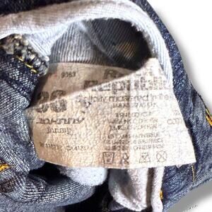 The jeans are in good vintage condition and ready to wear. There is some light distressing on the back pockets, and the size tag is coming detached.