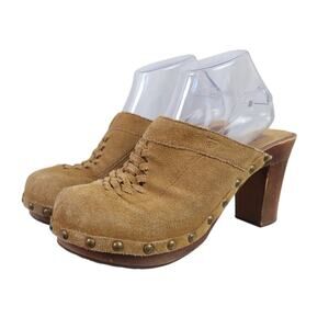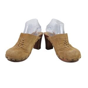 Vintage Y2K Roxy Tan Suede Leather Wooden Heel Mule Clogs 8.5