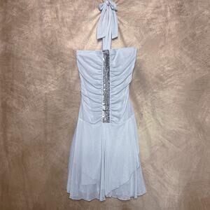 Vintage Y2K Ruby Rox Sparky Glitter Halter Formal Dress Drop Waist Sequin Stripe