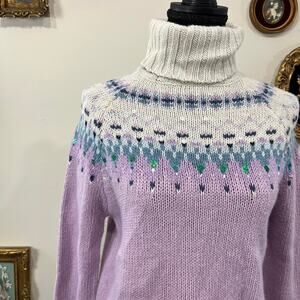 Vintage Y2K Rue 21 Lilac Fair Isle Sequin Knit Turtleneck Sweater Bell Sleeves