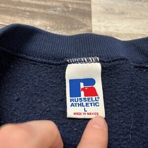 Vintage Y2K Russell Athletic Navy Blue Mens L Blank Fleece Pullover Sweatshirt