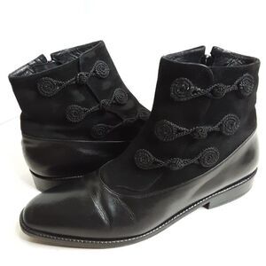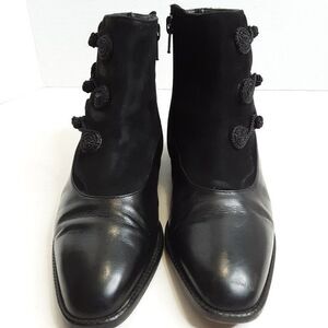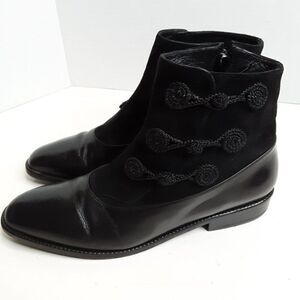 soles has wear, great condition in the shoes (no rip no holes no stain no scratch), no box. Please scroll picture for more details. Vintage Y2K Salvatore Ferragamo Women's 5.5M Black Suede Ankle Boot FROG CLASP. Pet and smoke free home.