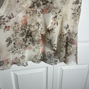 Vintage Y2K Sara Michelle Skirt Women Medium Beige Floral Whimsey Ruffle High Lo