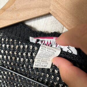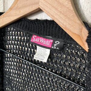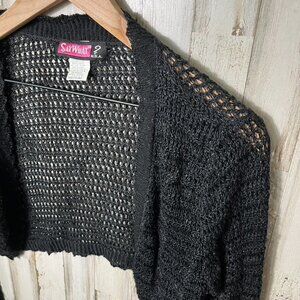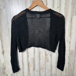 Vintage Y2K Say What Black Crochet Long Sleeve Mini Shrug USA Womens Medium