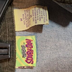 A Vintage Y2K Scooby-Doo Denim button-up flannel shirt in women's size medium. This shirt was made in 2000 for Cartoon Network for the What's New Scooby-Doo? show. It features a 100% cotton construction with a denim base and dark green corduroy collar. It has one chest pocket with an embroidery of Scooby with a few pink and purple flowers. The collar points are also tipped with pink flowers. Button closure with cuff buttons. This shirt is in excellent condition for it's age with no stains, frays, or signs of wear.