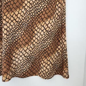 Vintage Y2K Sense Brown Snakeskin Print Bias Cut A-Line Midi Skirt M