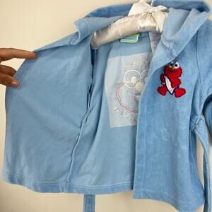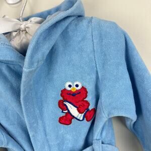 Vintage Y2K Sesame Street Beginnings Blue Elmo Bathrobe. Baby boy or girl size 0-9 months. Cute and cozy blue robe with Baby Elmo on the chest and back. Circa 2006. Tiny mark inside neck (see last photo; untreated) but otherwise excellent condition. Perfect for bath time!