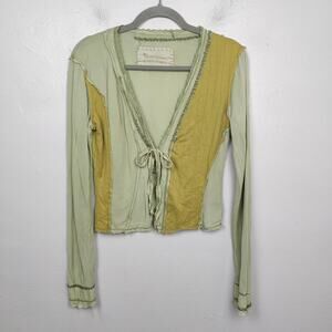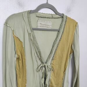 Vintage Y2K Shangana Heaven On Earth Cardigan Women XS Green Patchwork Tie Front