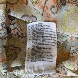 • Soft pastel floral + paisley print in peach, mint, cream, and lilac tones