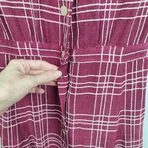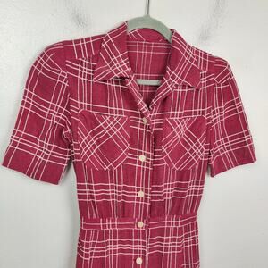Vintage Y2K Shirt Dress Womens Small Dark Pink Check Button Front Western Retro