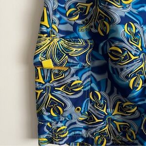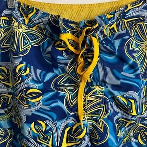 Vintage Y2K Sideout Men’s Hawaiian Flower Print Swim Trunks-Blue/Yellow Size 32