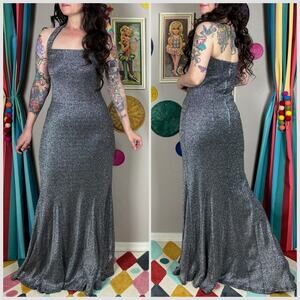 Vintage Y2K Silver Lurex Halter Trumpet Gown