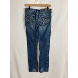 Vintage Y2K Silver Suki Jeans Women’s 28x32 Blue Distressed Slim Fit Denim