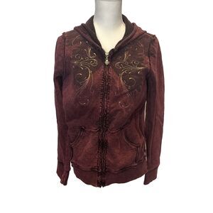 Vintage Sinful Hoodie Xl Women's Maroon Wings Feathers Gold Metallic