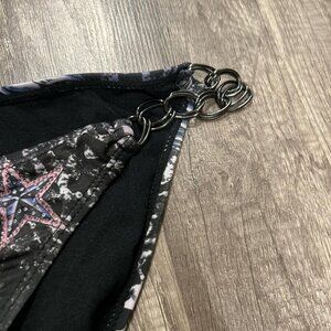 Vintage Y2K Sinful by Affliction rare bikini bottoms! The coolest vintage bikini bottoms with chain strap detailing, rhinestones on the front and back, and the cutest heart with wings, leopard print, and stars design! Rare Y2K piece that screams early 2000s!