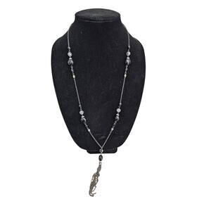 Vintage Y2K Single Strand Chain Style Tassel Necklace Silver Black