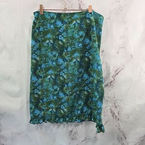 Vintage Y2K Skirt Womens Medium Blue Green Ruffle Snake Reptile Whimsy Witchy