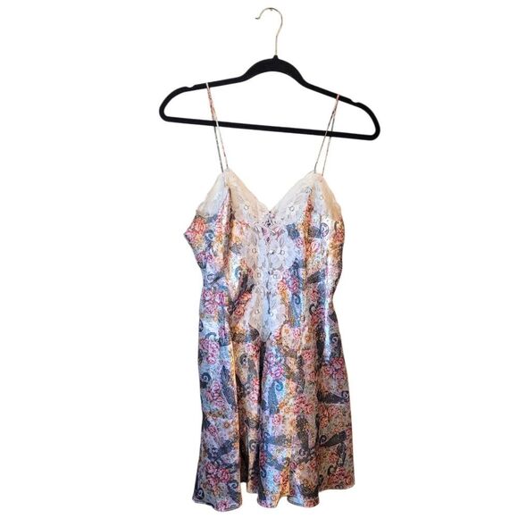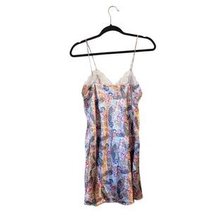 Vintage Y2K Sleep Solutions Satin Paisley Lace Chemise Slip Women's Size M