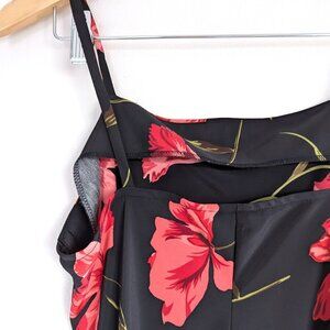 Pretty Y2K floral black and red slip dress, long and slinky- very feminine and classic style. Vintage Expressions brand. Unlined.