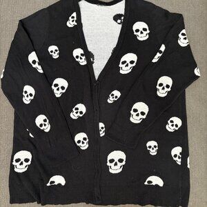 Vintage Y2K Smiling Skulls Women Oversized Cardigan XL Goth Emo Grunge Button up