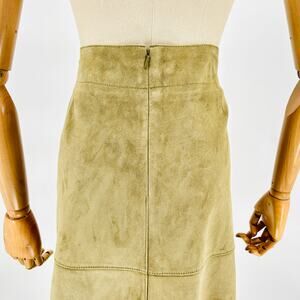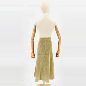 Vintage Y2K So Blue Sigrid Olsen Khaki Tan Suede Leather Midi Skirt
