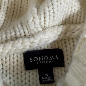 Vintage Y2K Sonoma Cable Knit Hooded Preppy Sweater Vest - White Wms Medium