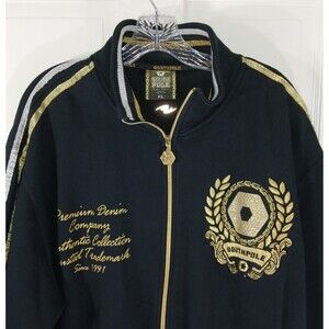 Vintage Y2K Southpole Track Jacket Mens XL Black Gold Zip Up Hip Hop StreetWear