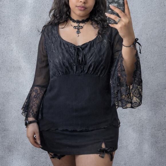 Spenser jeremy woman, silk blouse, sheer black top, lace chiffon blouse, y2k eveningwear, romantic goth top, witchy blouse, dark coquette, plus size silk top, size 18 blouse, empire waist top, formal sheer blouse
