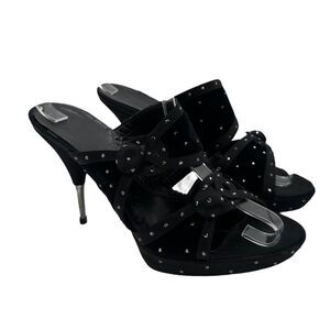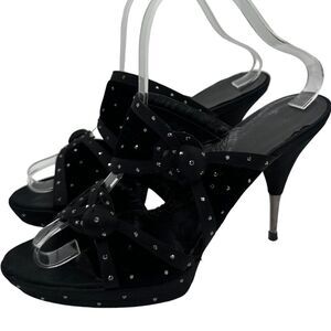 Vintage Y2K Stella McCartney Rhinestone Black Velvet Evening Heels Shoes Size 39