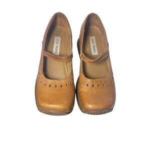 Vintage Y2K Steve Madden Jazmine Brown Leather Chunky Mary Jane Shoe Sz 7.5 B
