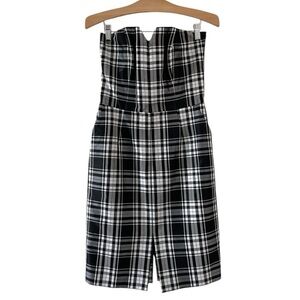 Vintage Y2K Strapless Runway Silk Plaid Cocktail Dress