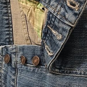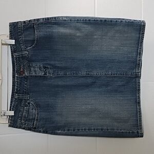 Vintage Y2K Stretch Denim Button Front Back Slit Skirt with a Touch of Bling 7/8