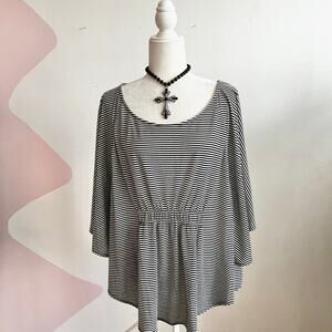 Vintage Y2K Striped Batwing Sleeve Top, 2000s Retro Goth Grunge 3X