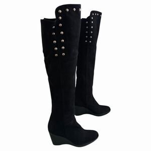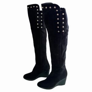 Vintage Y2K Stuart Weitzman Boots 8 Moto Over The Knee Studded Black Suede Wedge