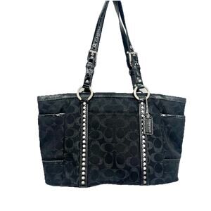 Vintage Y2K Studded Black Authentic Coach Shoulder Bag With Silver Hardware