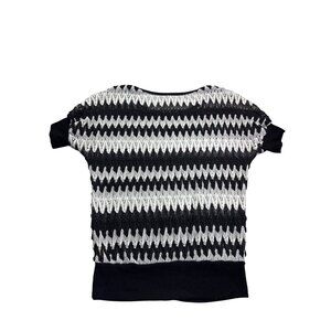 Vintage Y2K Studio Y Womens Metallic Zigzag Knit Top Size S Dolman Sleeve Black White