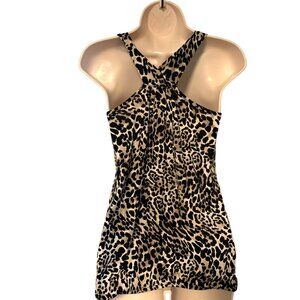 Vintage Y2K Studio Y Womens Size Small Tank Top Beaded Embellished Shirt Animal Print Brown Black Leopard Cheetah