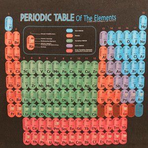 Sun faded black short sleeve crewneck t-shirt by Cotton Expressions with Periodic Table of the Elements science chart graphic. Boxy fit.