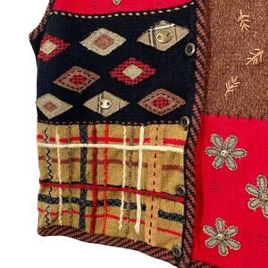Vintage Y2K Susan Bristol Fall Embroidered Mixed Media Knit Vest Size Medium