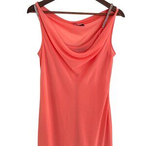 Vintage Y2K Suzanne Grae Slip Midi Dress M Cowl Neck Peach Sparkle Fairy Core