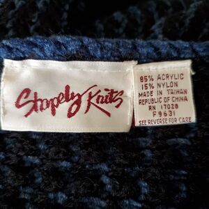 Vintage Y2K Sweater Blue Black Knit Chenille Accents Dolman Sleeves *READ*