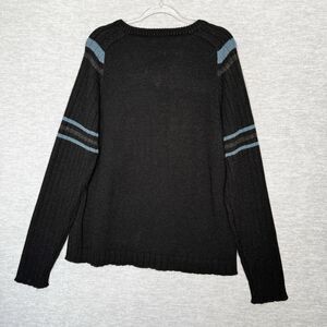 Vintage Y2K Sweater Mens Size XL 90s Wool Blend Chest Stripe Black Blue Grunge