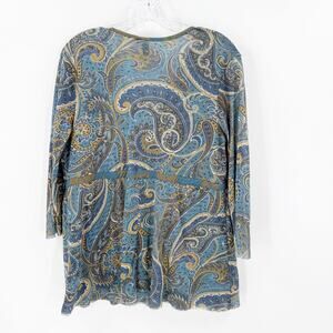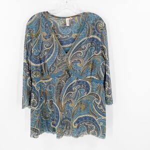 Vintage Y2K Sweet Pea Blue Paisley Sheer Babydoll Blouse Size Large XL FLAWED