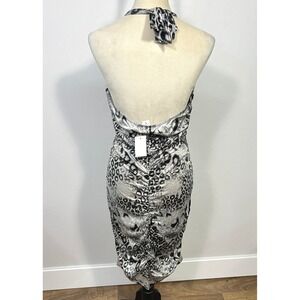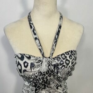 Vintage Y2K Taboo Animal Print Halter Dress XL Ruched Bodycon Club Mob Wife Glam