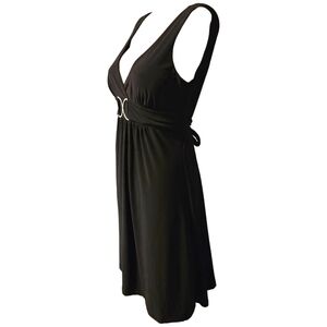 Vintage Y2K Taboo Black Mini Dress L Rhinestone Belt Sleeveless Deep V Party