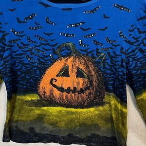 Vintage Y2K Take Two All Over Graphic Bats and Pumpkin Print Ombre Size Large