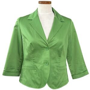 Vintage Y2K Talbots Kelly Green Blazer 6P Stretch Cotton Career Professional 3/4