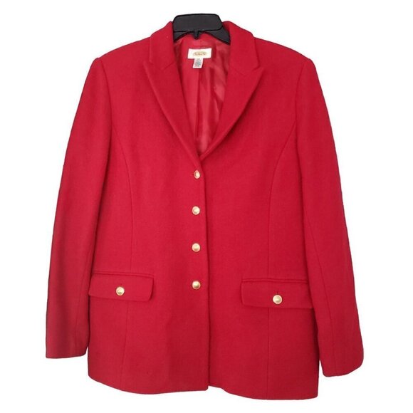 Vintage Y2K Talbots Red Berkshire Wool Coat Gold Button & Pockets Womens Size 14