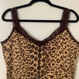 Sharon Young VTG 2000s Retro Whimsical Girly Aesthetic Leopard Print Built in Shelf Camisole