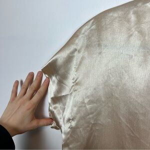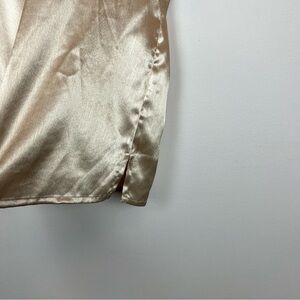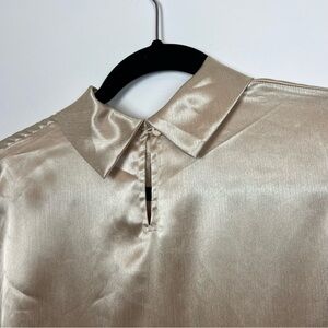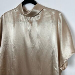Vintage Y2K Tan Jay Gold Satin Blouse Mock Neck Keyhole Shimmery Metallic Sz Md